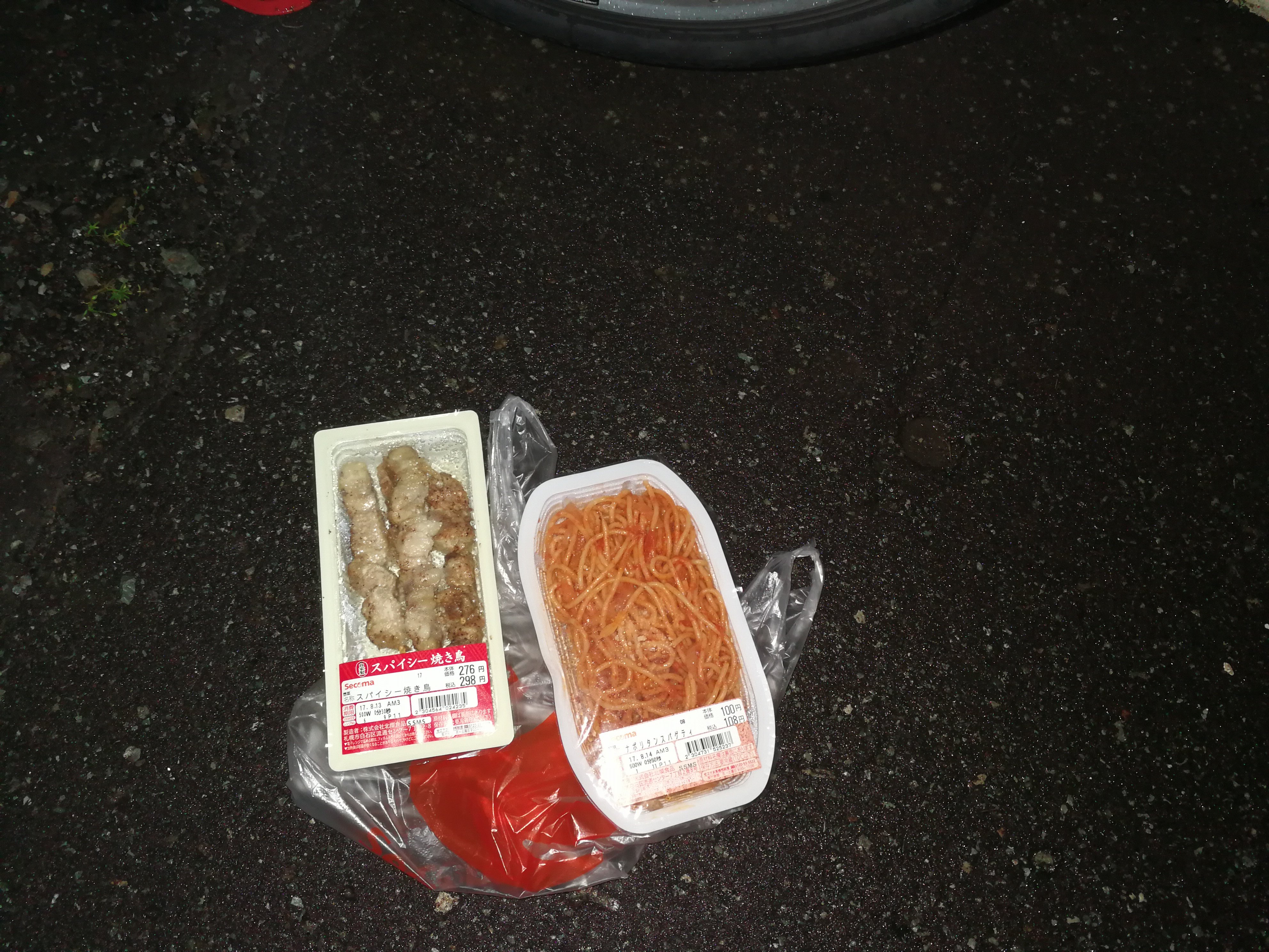 雨も降っており仕方がないので近くの駐輪場で野宿
