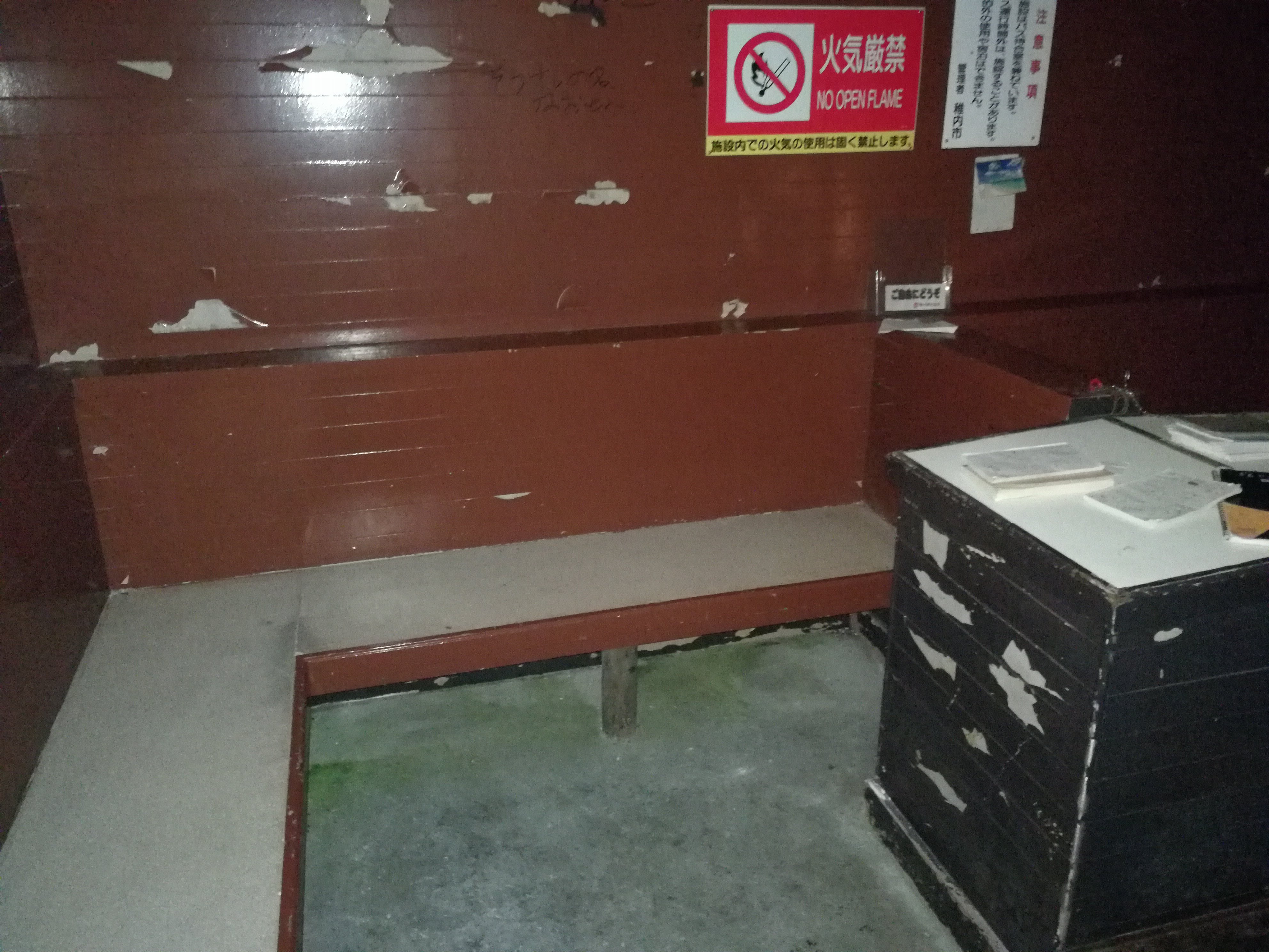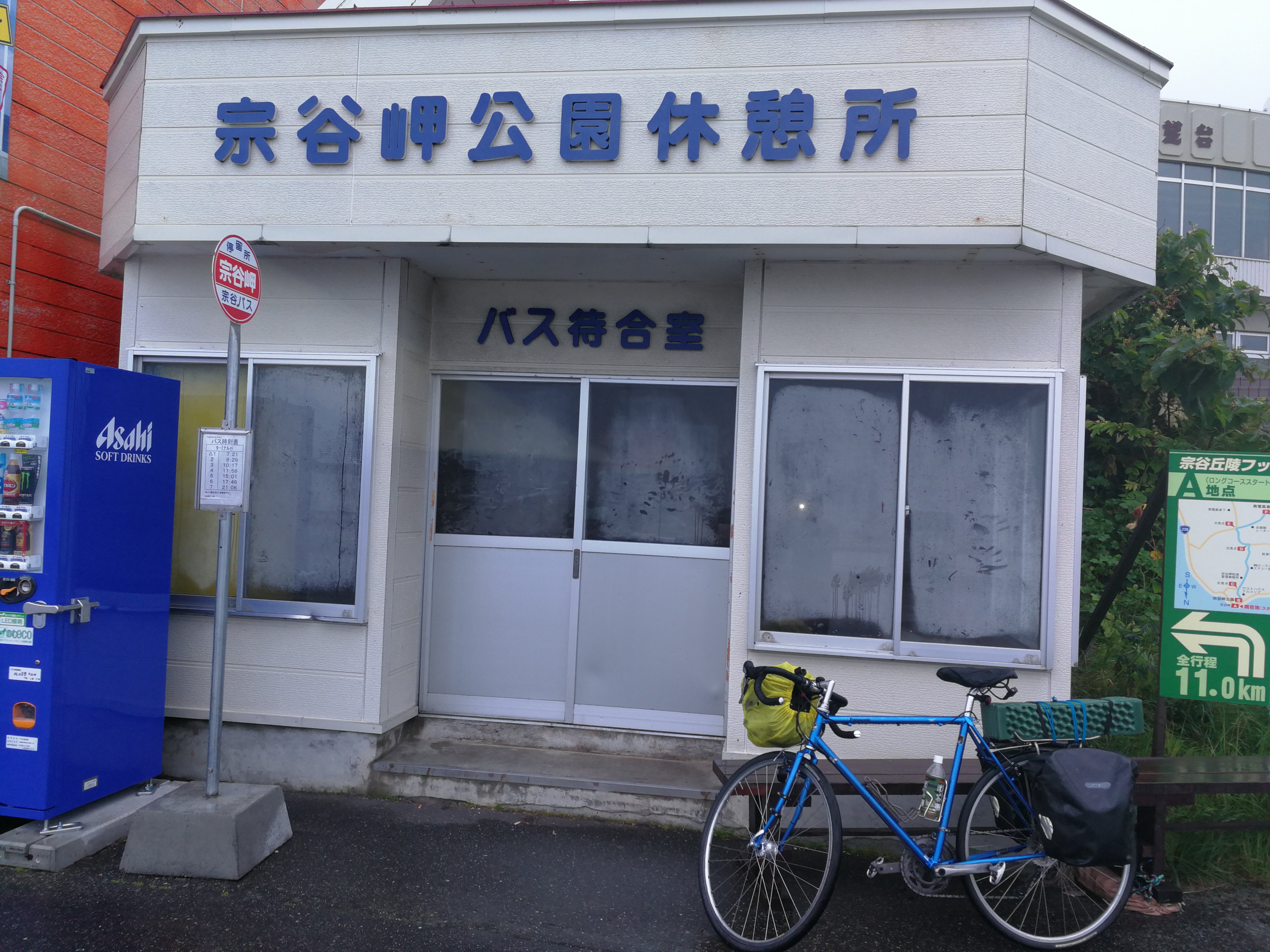 雨なので宗谷岬バス停内で野宿した