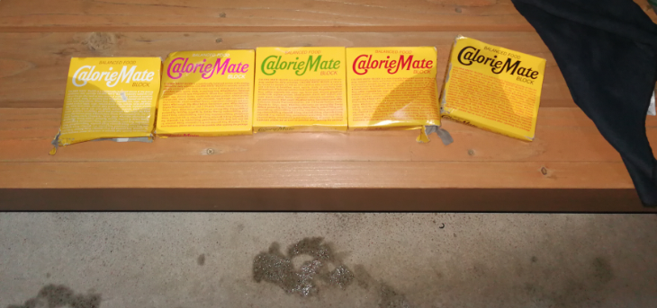 ただし、バイクパッキングにも弱点はあります。一番の弱点は積載力です。リア2サイドであれば合計40Lのサイドバッグが搭載できるので、食料なども余裕で積み込めるし、リアキャリアの上にはマットを搭載できます。しかし、バイクパッキングではそれほど容量を確保できないので、食料はカロリーメイトくらいしか搭載できないし、マットは使い勝手の悪い空気式のものを使わざるを得ないです。去年の三陸ツーリング3日目では人家のない無人地帯を走ることになりましたが、食料を搭載する余裕がなかったため、夕食と朝食がカロリーメイトのみとなりました・・・