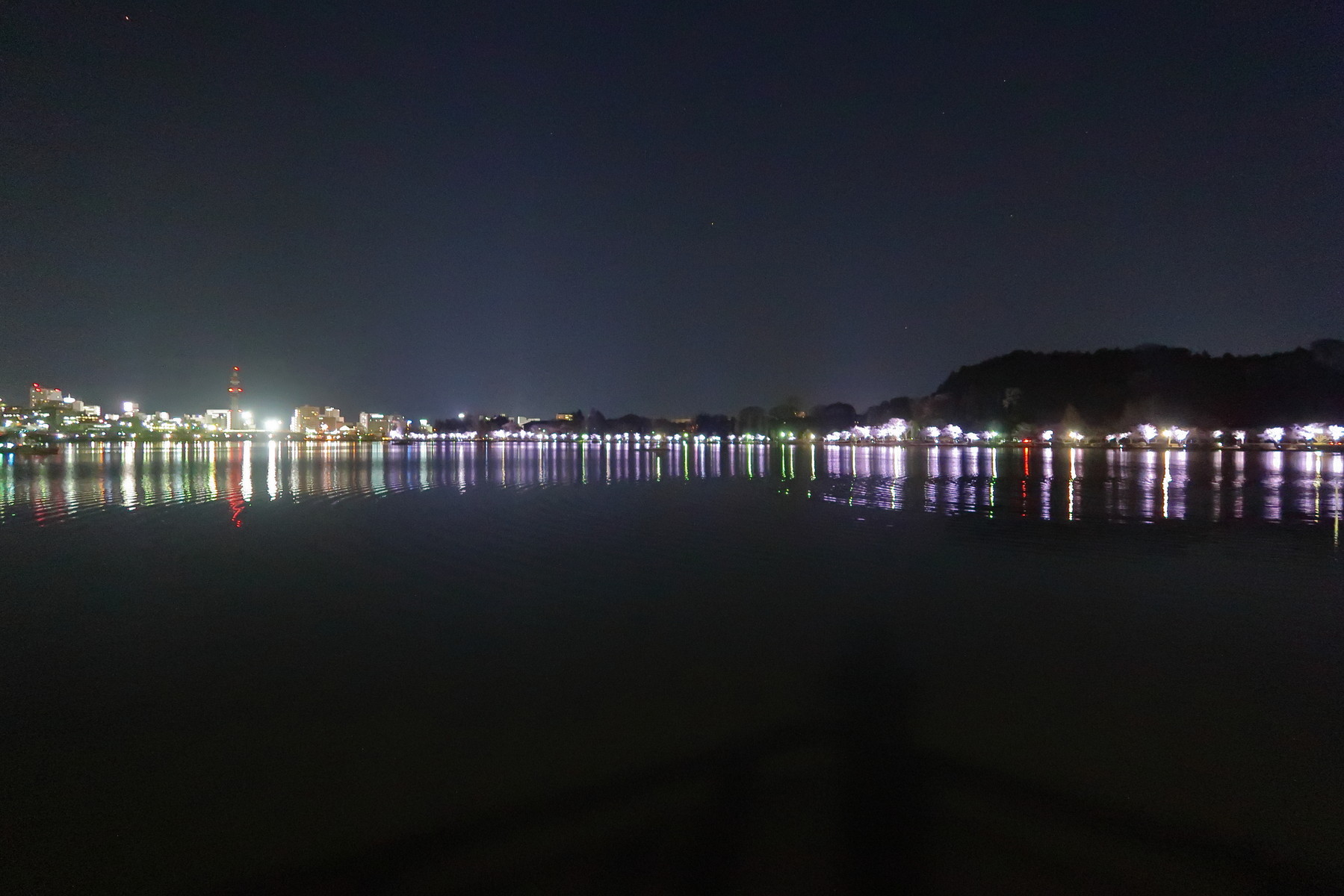 夜桜花見ポタ 2019年04月04日 水戸駅南口から出発。桜川沿いを千波湖に向かって走る。桜は7分咲きといったところ。千波湖の桜はこの時期ライトアップされている。せっかくなので桜を見ながら1周することにした。対岸には黄門様の銅像が。千波湖から水戸市街を望む。桜がライトアップされた湖畔沿いの道を進む。 「ポタリング」カテゴリの最新記事 タグ :#ポタリング#桜 < 前の記事次の記事 > コメント コメントフォーム 名前 コメント 評価する リセット リセット 顔 星 投稿する 情報を記憶