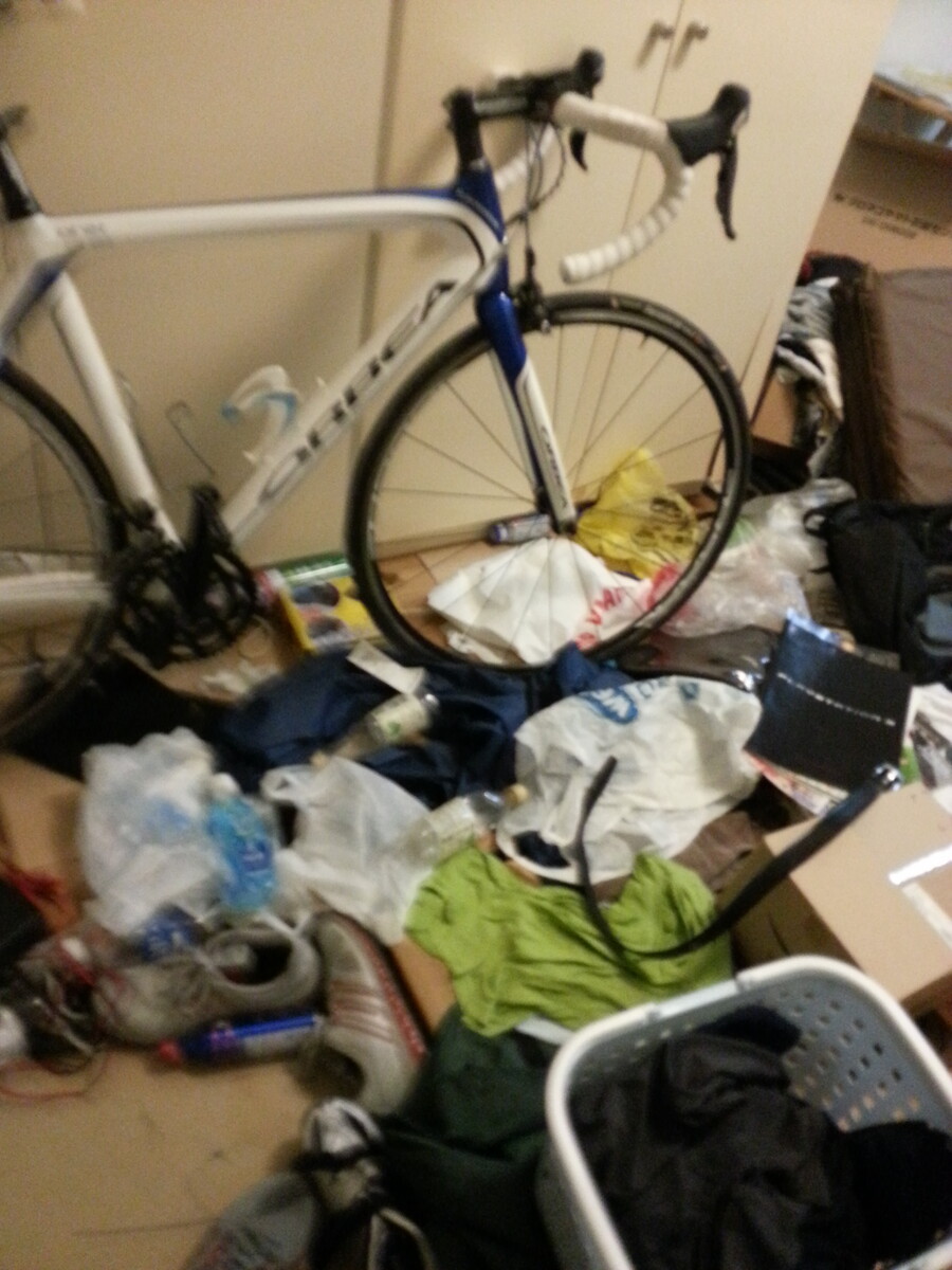 自転車もゴミの中に埋もれ、もう1年以上乗った形跡はありませんでした。
