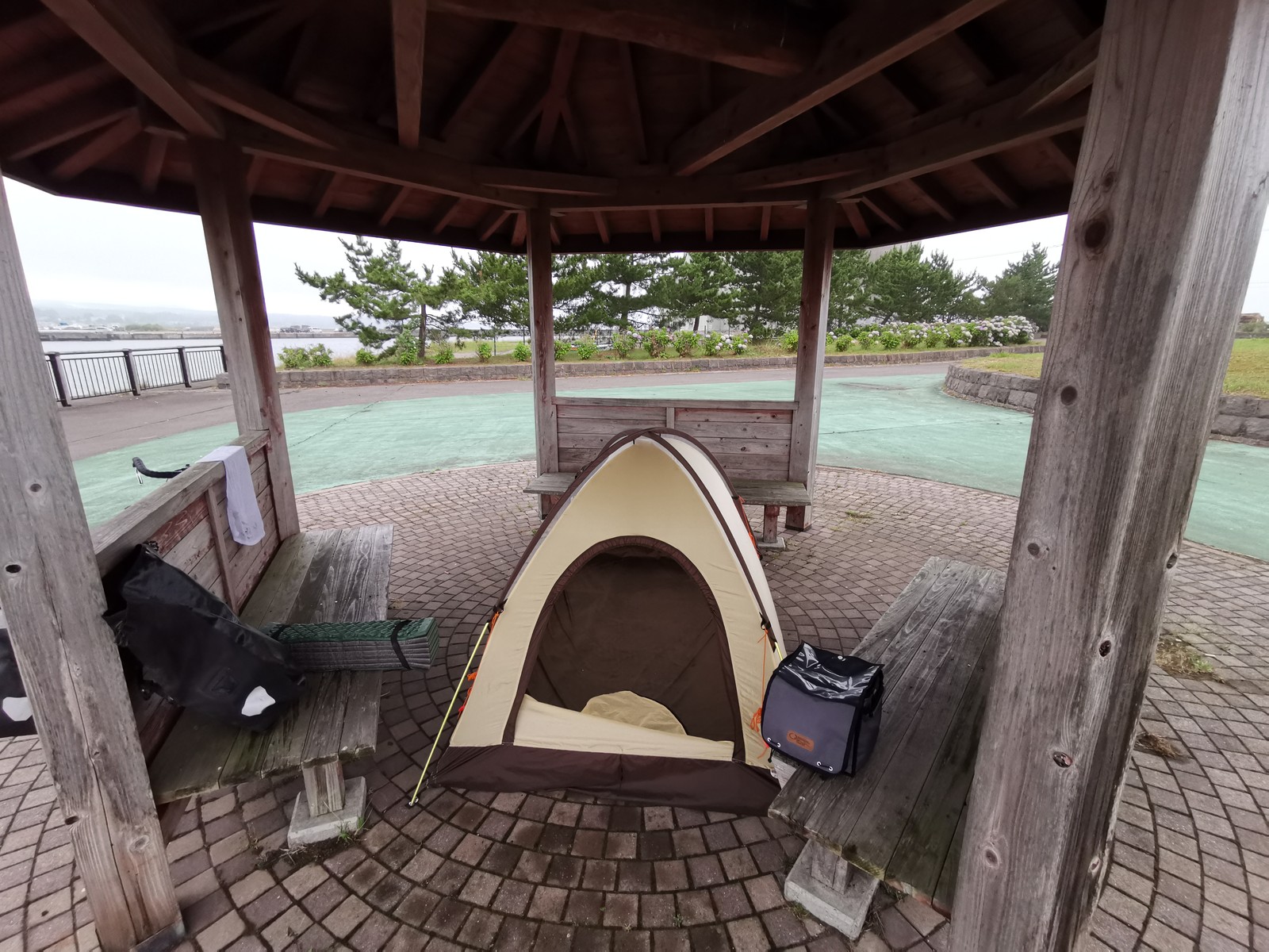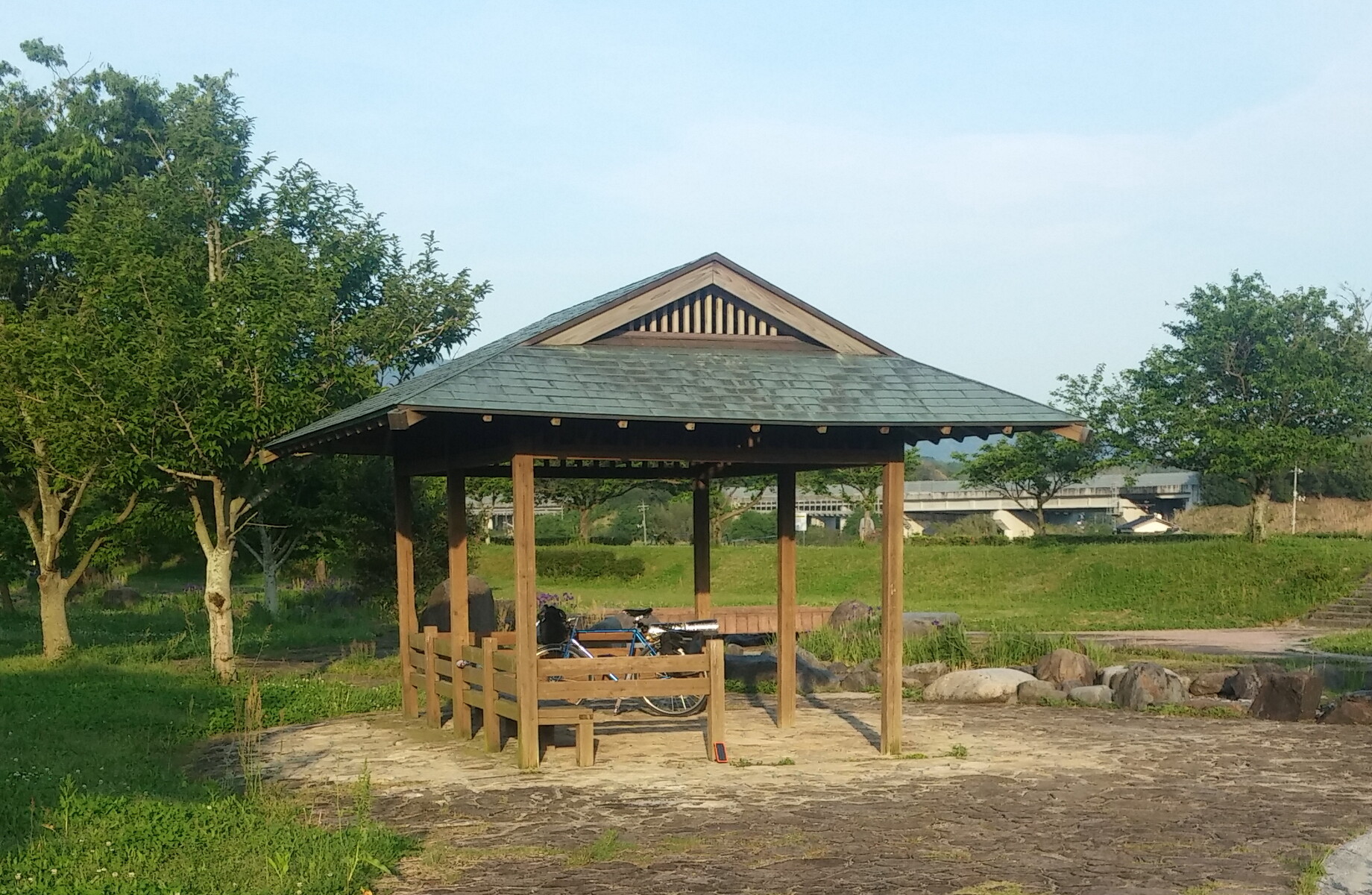 設備:トイレ〇、東屋〇、風が強い
