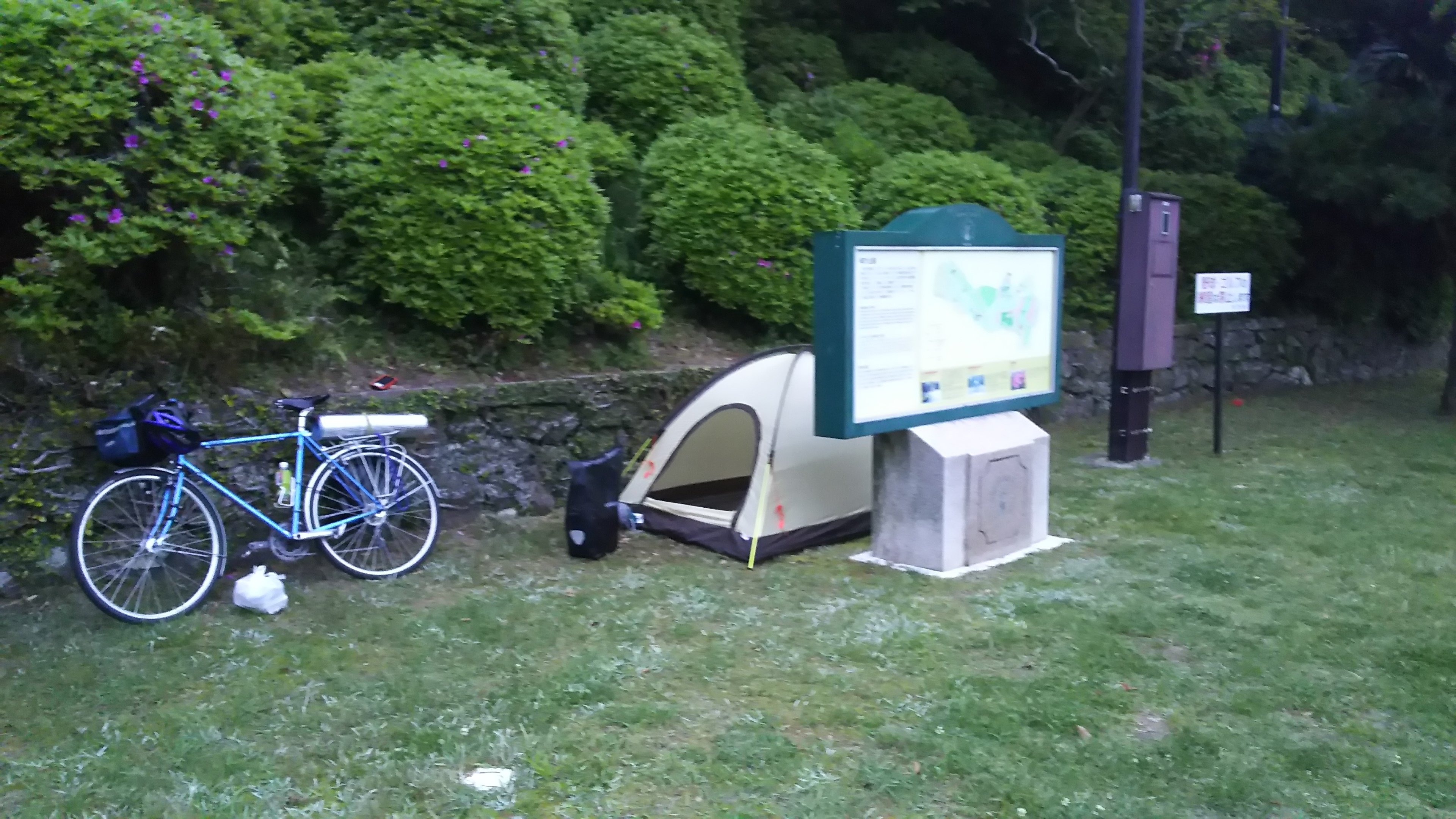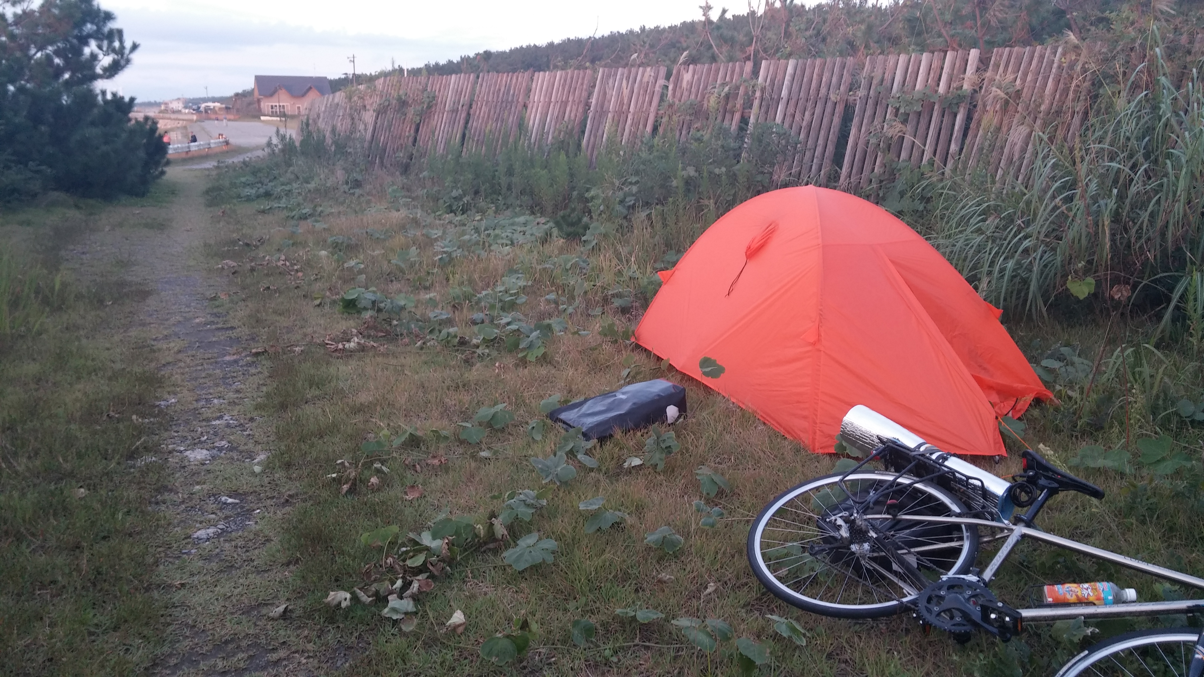設備:トイレ〇、キャンプ場価格高い(1900円)、海岸で野宿推奨