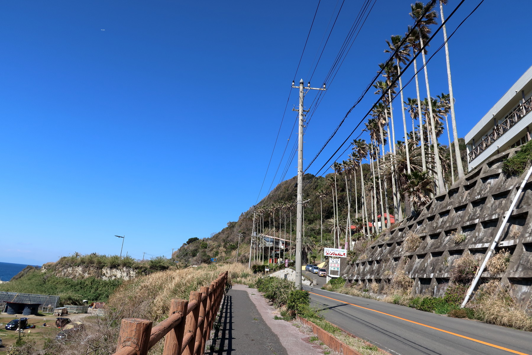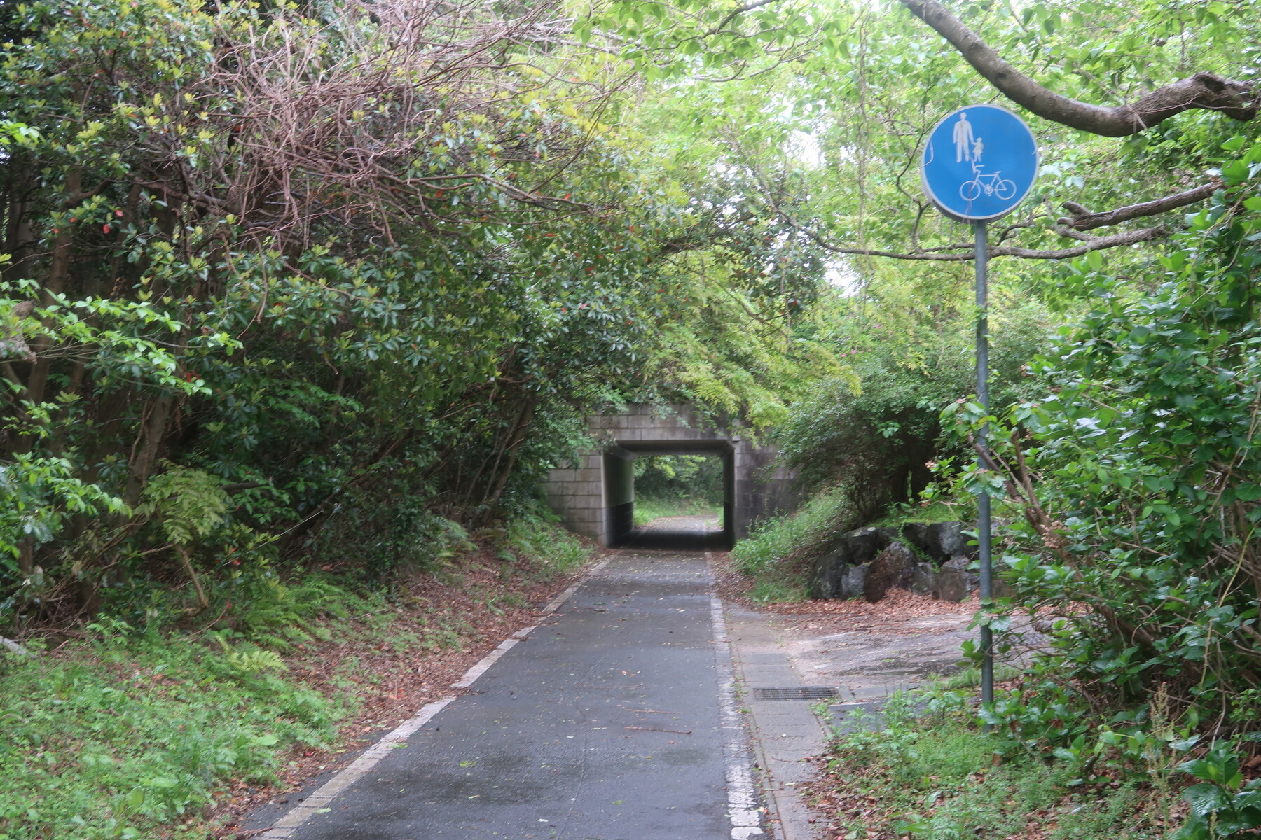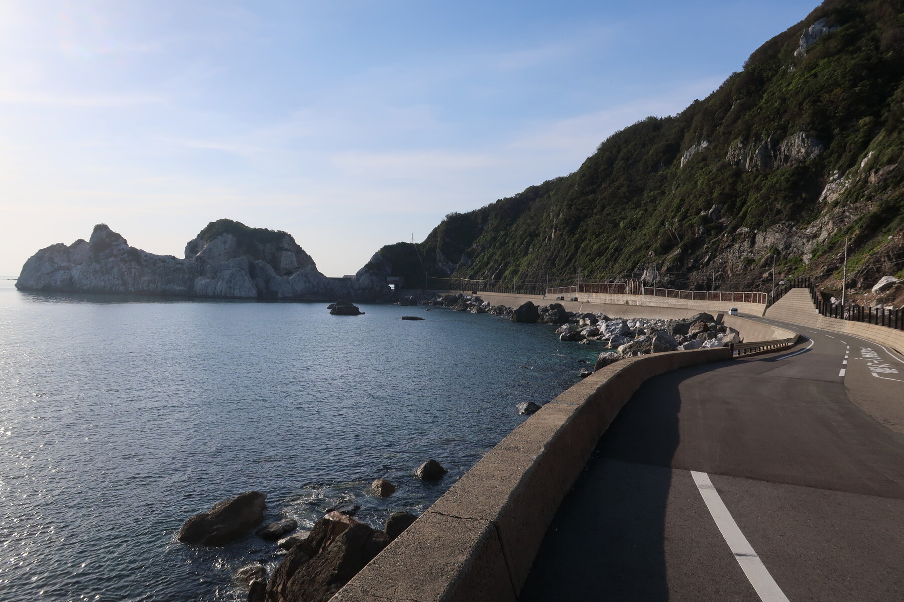 ここからはアップダウンの厳しい断崖の道になりますが、歩道用トンネルが整備されており安全に走れます。