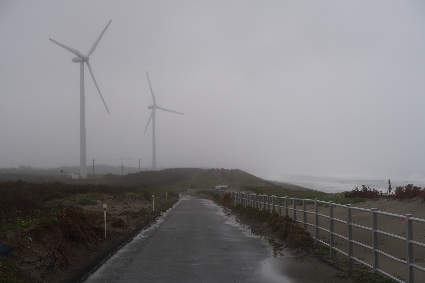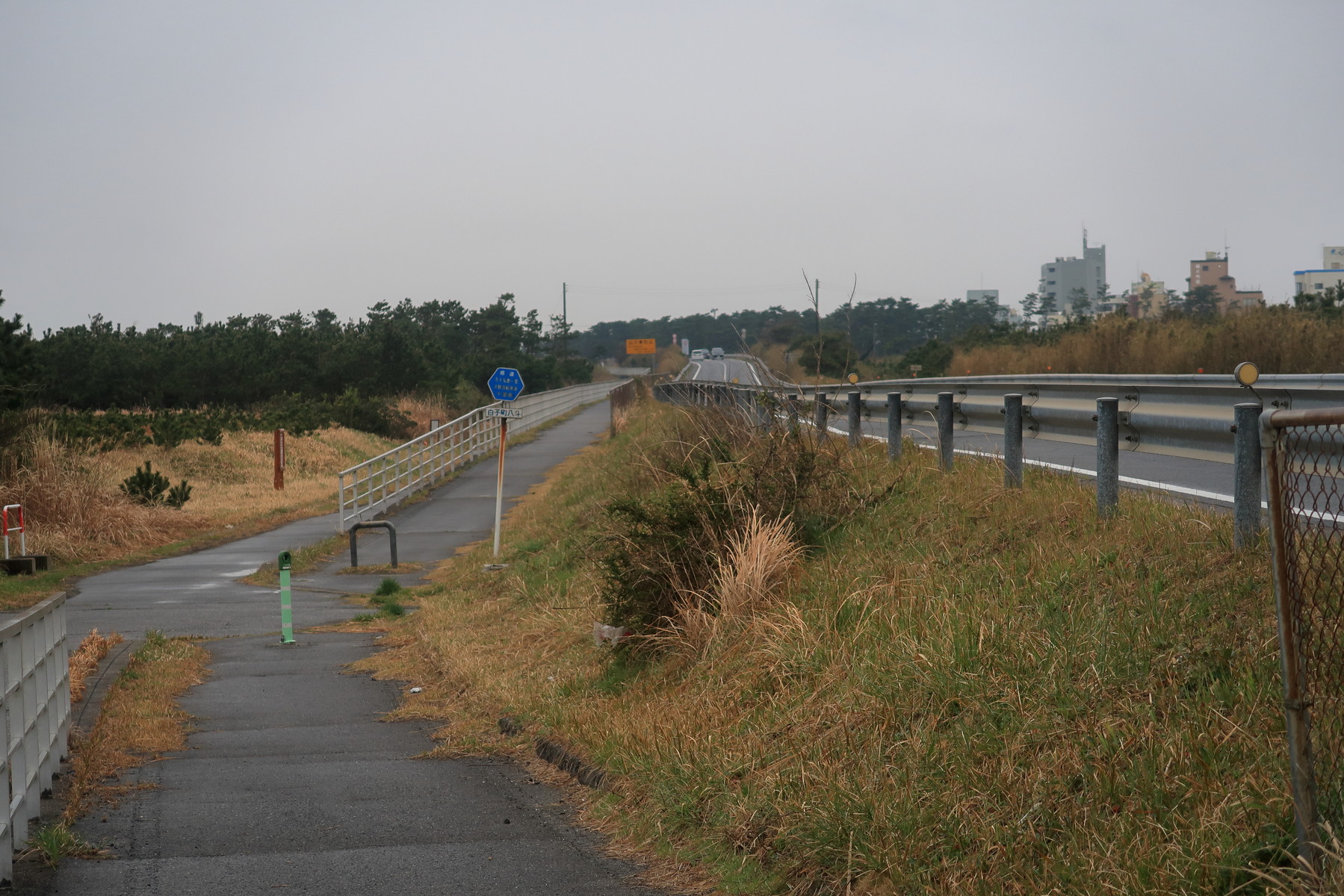 しばらく進むと再び専用道になる。海から少し離れたところを走るので砂地獄はないが海が見えない・・