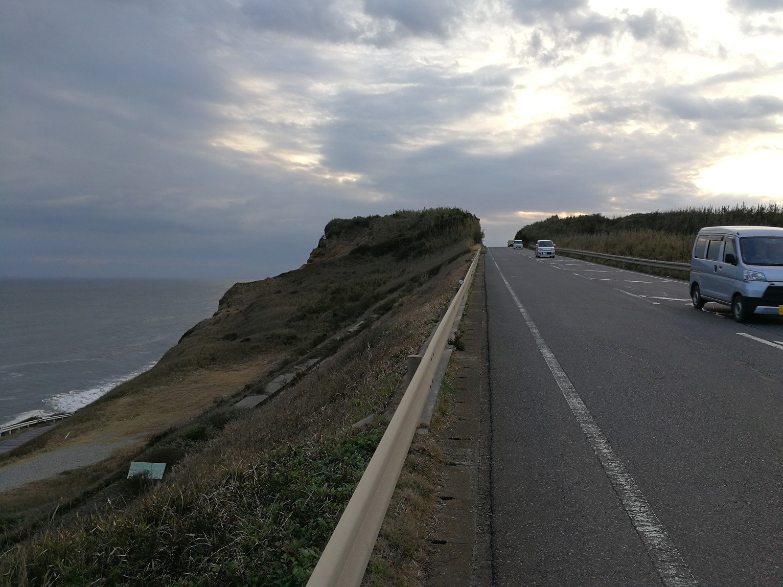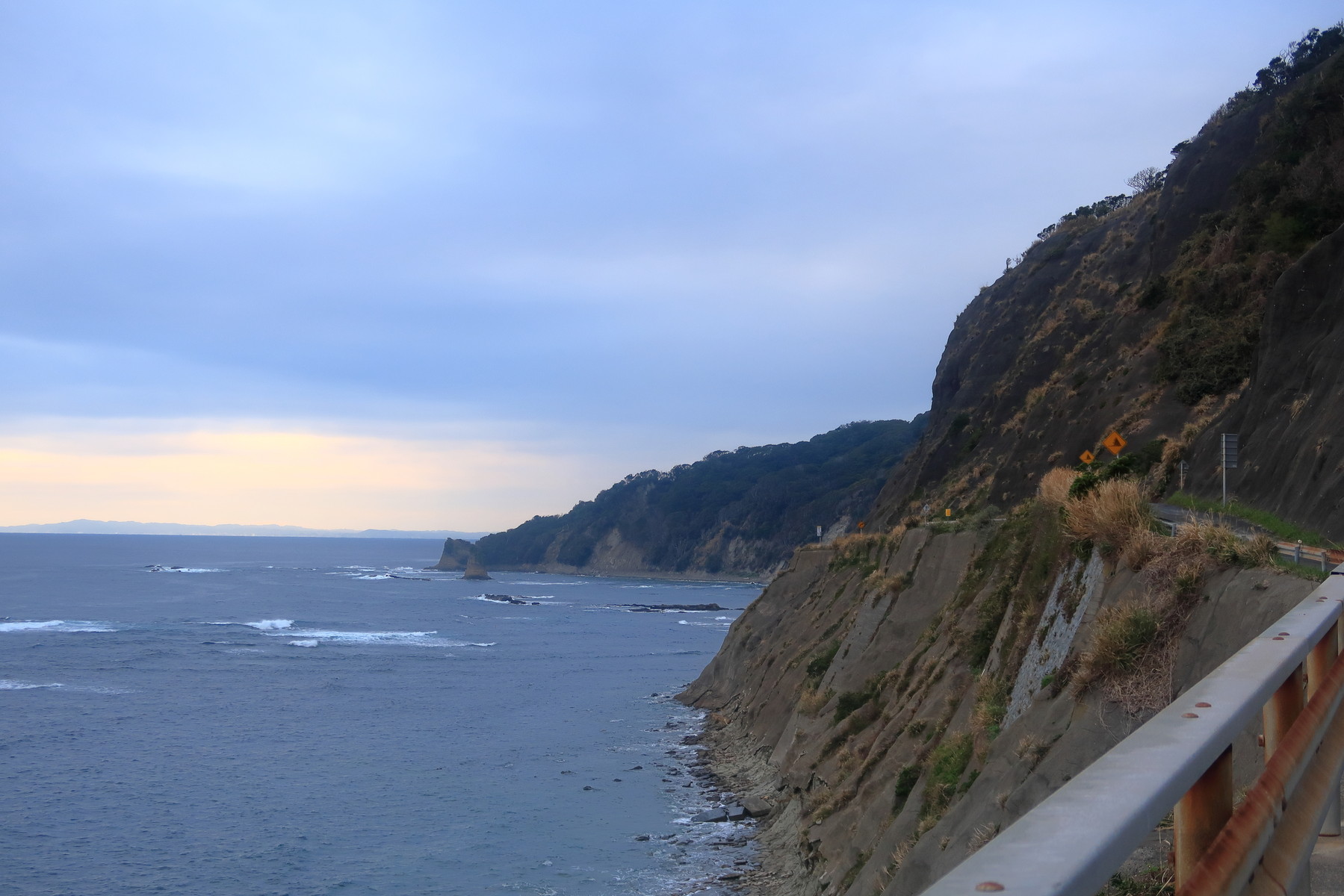 銚子からしばらくは断崖の海沿いを進みます。