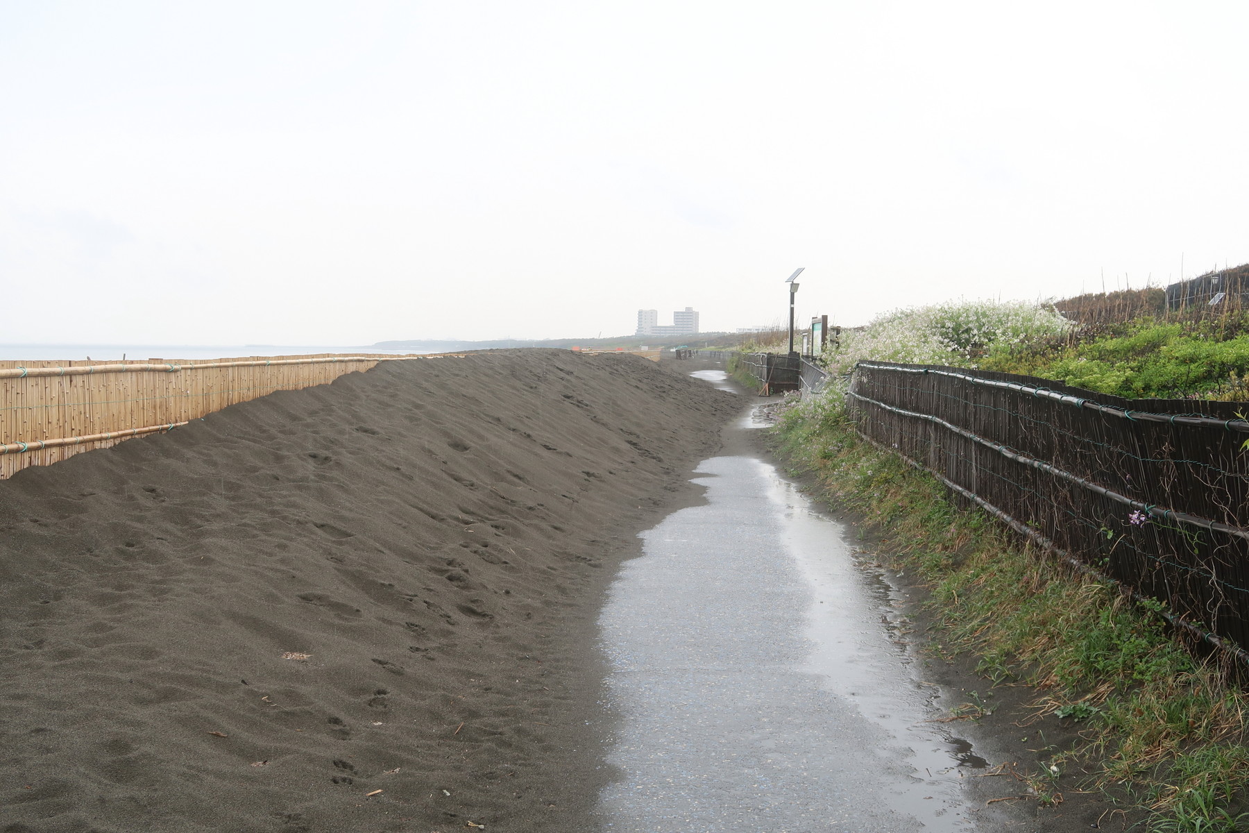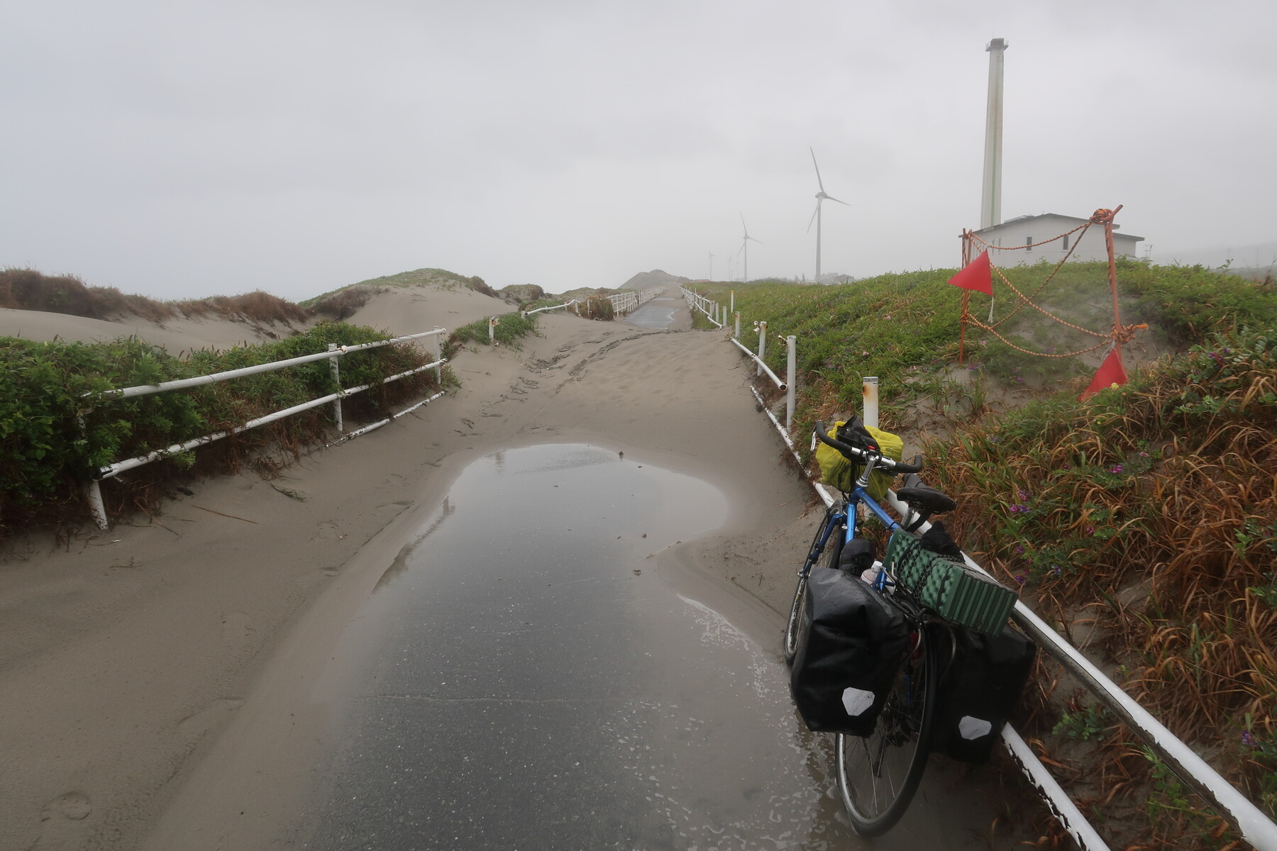 自転車道が砂浜のすぐ近くを通っているので、かなりの頻度で(それこそ雪国の除雪のように毎朝)砂かきをしないとキレイな状態で維持できないと感じました。