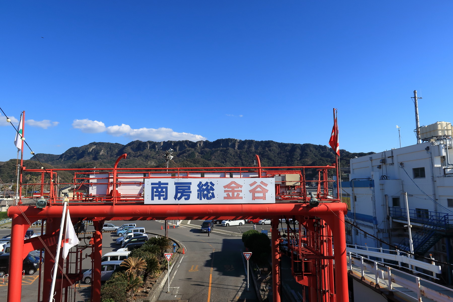 振り返ると鋸山が見えます。さらば千葉県!