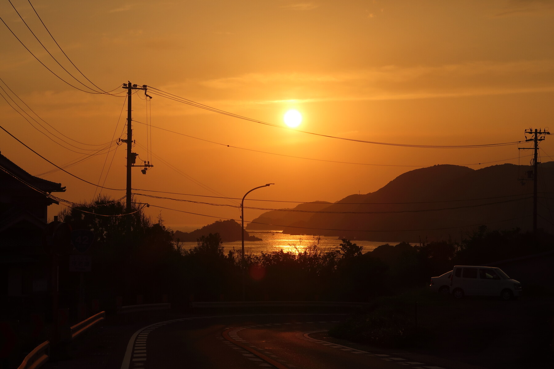 紀北町で国道42号と合流し、南下します。古里海岸キャンプ場(無料)でキャンプです。