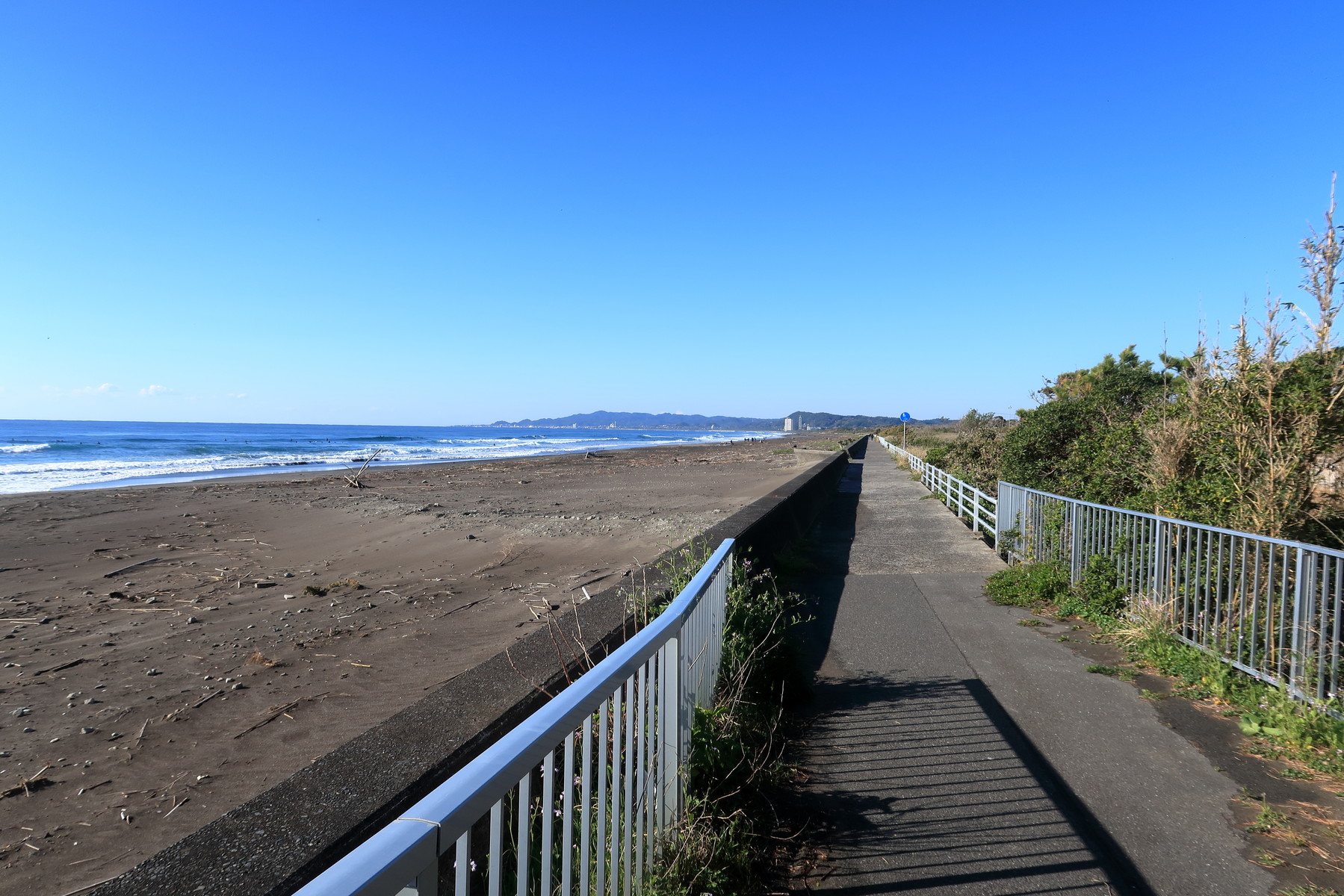ここからは久々の自転車道を走ります。湘南海岸砂浜のみちです。