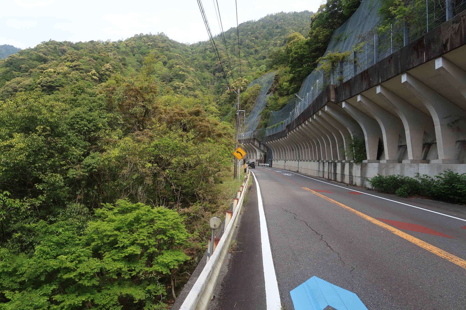 国道42号に入ると本格的な峠越えです。紀伊半島では自転車道に青いラインが引いてあるので迷うことがありません。