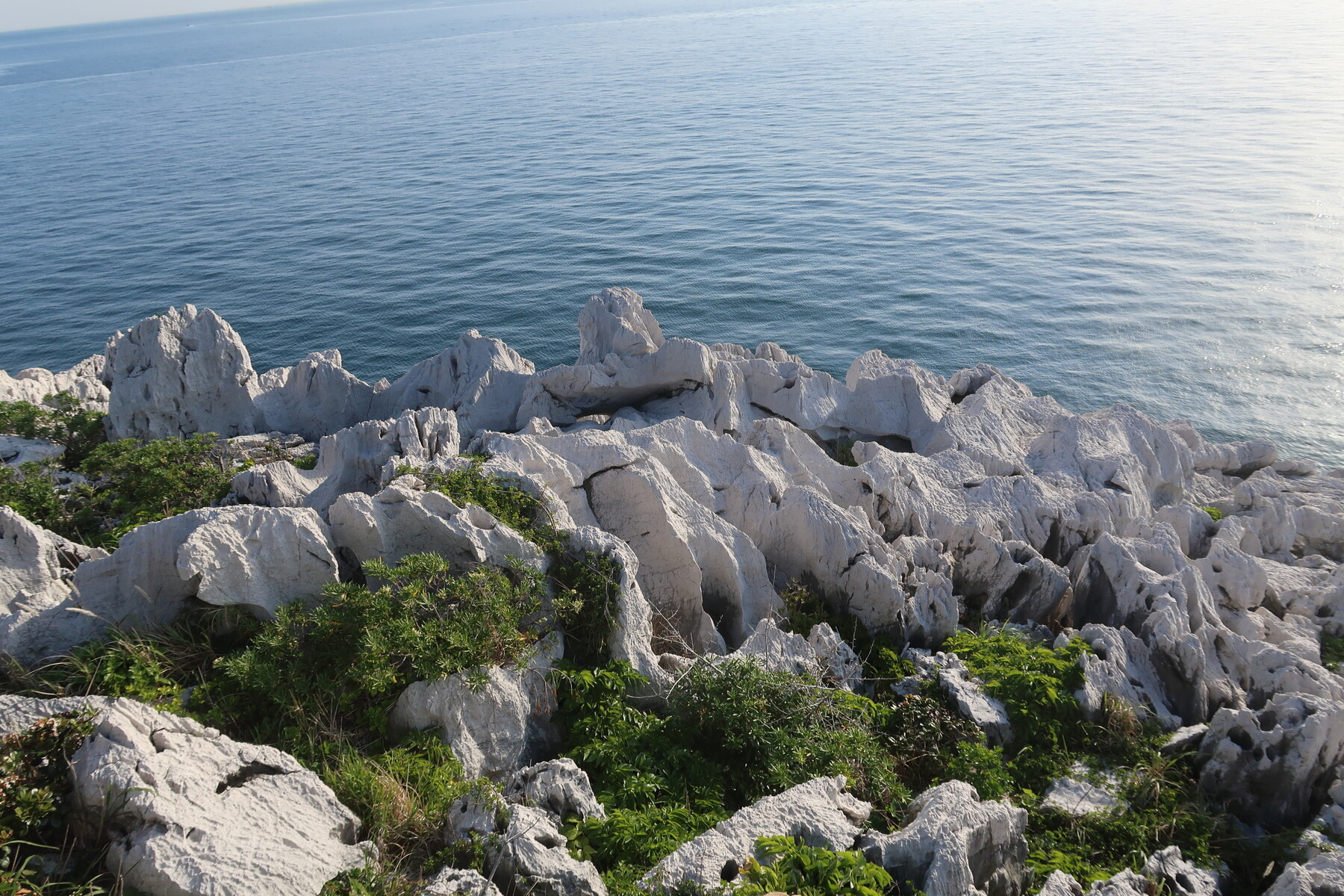 白崎海洋公園では見たこともない真っ白な岩々が。