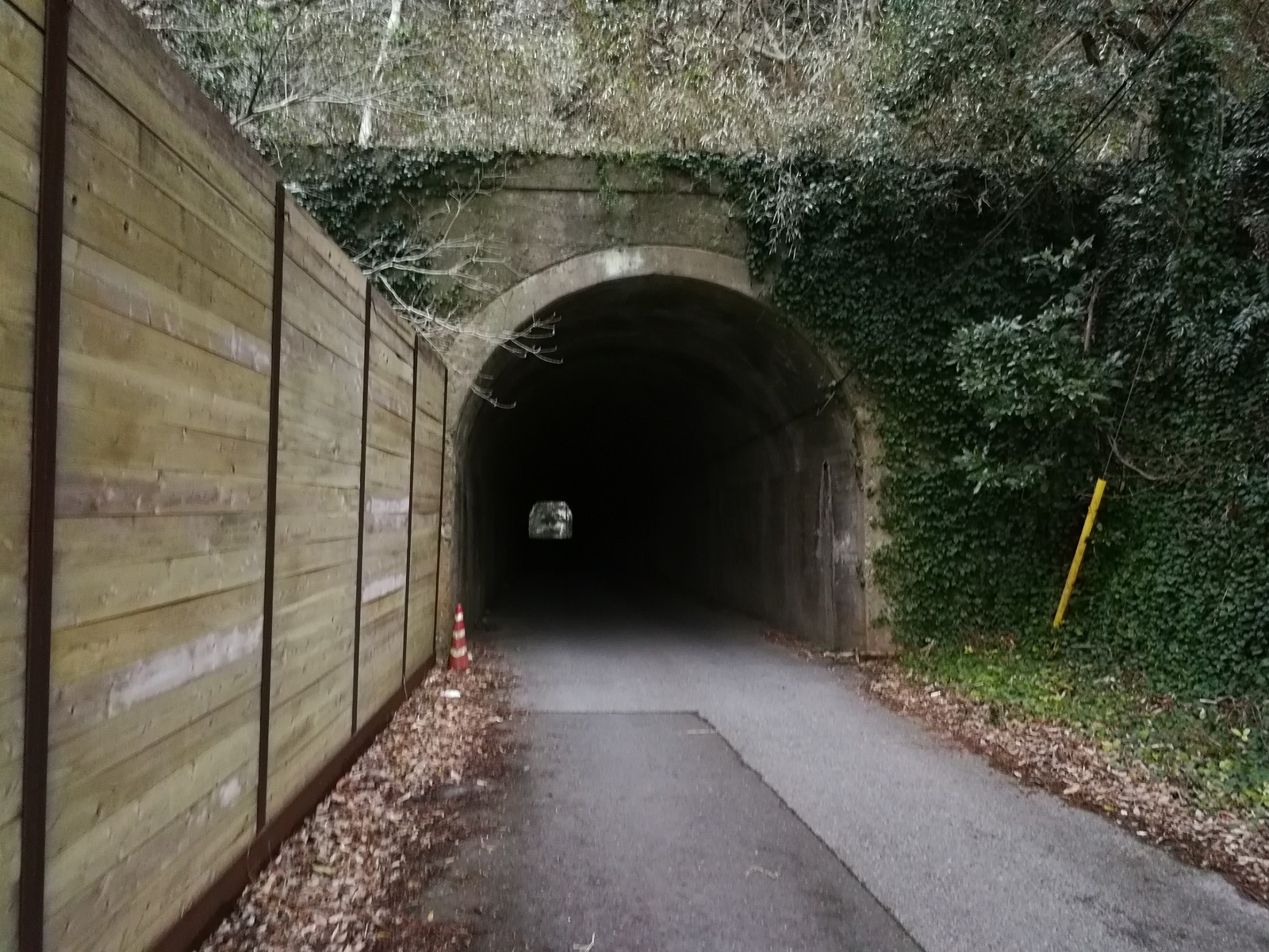 トンネルには歩道があるので安心です。