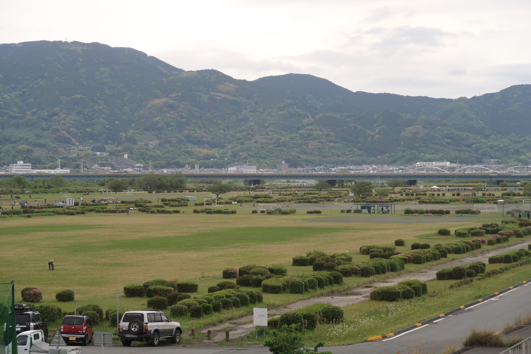 有田市内に入り、河川敷でキャンプをします。