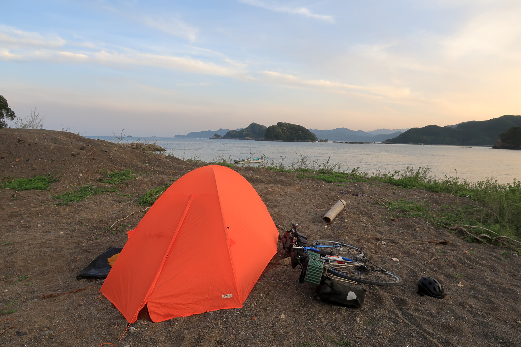 日置川の海岸で野宿します。